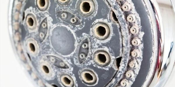 Dissolved calcium (or magnesium, other minerals and salt)salt in the water flows through showerheads and faucets and gradually forms a white crusty-looking build-up called lime scales (lime deposits or lime film) that are really hard to clean away.
